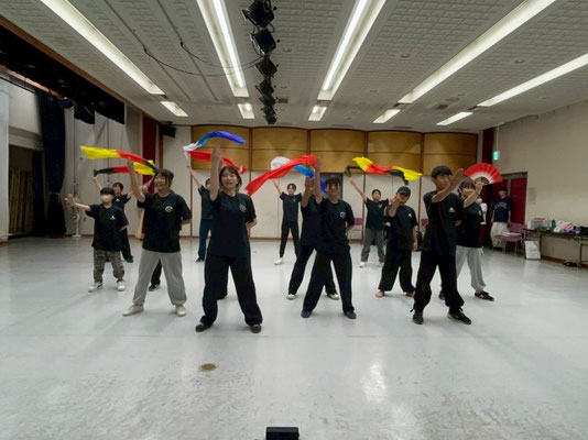 この日は扇子・傘・ファンベールなどたくさんの小道具を使って鮮やかに彩り、お客さんの目に残るようなダンスを表現できるように全力で頑張りました!!✨