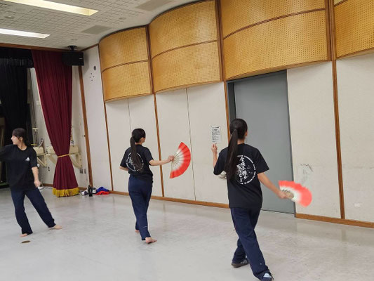 扇子、傘、ファンベールの小道具組とダンス組に分かれて動画を見て振りを確認したりひたすら踊って練習を進めて行きました👏