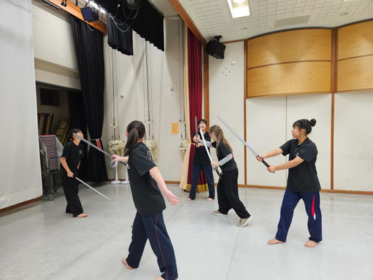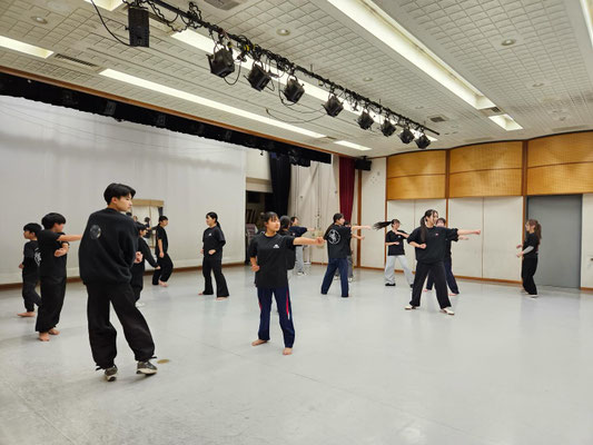 基礎練習をした後は、チームごとに別れて立ち回りの練習を行いました!今回初めて殺陣をするメンバーもいて立ち回りをする際、難しく苦戦する場面もありましたがみんなで協力し合い、教えながら頑張ることが出来ました!!